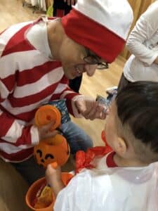 10月 0,1歳児クラスの様子です♪ 2025.10.31 幼稚園のワンワンバスに乗車してみました🐶 大きなかぼちゃがあったよ😁 園長先生の飼っているワンちゃんです😍 31日はハロウィンパーティーをしました✨ トリックオアトリート👻 ウォーリーからお菓子をもらったよ😁 園長先生や副園長先生からも お菓子をもらいました🌟 ≪前の記事へ 次の記事へ≫ 一覧に戻る