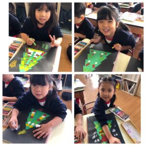 12月 年中児クラスの様子です♪ 2025.12.17 製作帳で、 クリスマスツリーを作りました🎄✨ 絵の具でデカルコマニーをしたよ🌟 素敵な模様がたくさんできたね😆 もうすぐクリスマス🌟 楽しみですね🎅♪ ≪前の記事へ 次の記事へ≫ 一覧に戻る