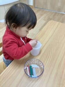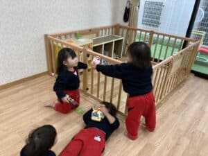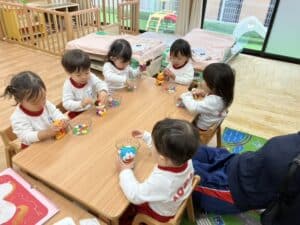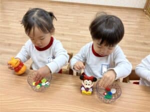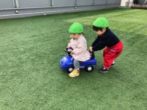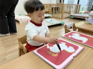 1月 0,1歳児の様子です♪ 2026.01.28 微細遊び 指先も上手に使えるようになりました✨ 1歳児はお友達と一緒にごっこ遊びをしてます😊 お外遊び お友達の車を押して一緒に遊ぶ姿も見られました🌞 1月製作 馬のイラストにスタンプをしたよ🐎 上手にインクも付けることが出来ました☺️ ≪前の記事へ 一覧に戻る
