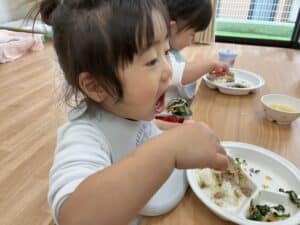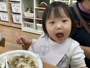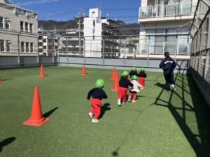 2月 0,1歳児クラスの様子です♪ 2026.02.25 少しずつ暖かくなってお外遊びも楽しいです🌟 帰りは並んでお部屋に帰ります😊 お兄ちゃんお姉ちゃんに憧れて マラソンをしました💕 みんな元気に走っていました😊✨ 給食おいしいね😊 ≪前の記事へ 一覧に戻る